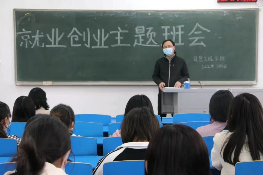 为扎实好2022届毕业生就业创业工作,促进毕业生高质量就业,威廉希尔官网于2022年3月31日下午4:00在4310、4311、4312三个教室开展2022届毕业生就业创业主题班会,威廉希尔官网党委书记王向前、电子信息工程教研室主任李圣普、学业成长导师张诗梦、2022届毕业班辅导员崔兵、周瑞敏出席本次活动,威廉希尔官网2018级在校近140名学生积极参加。