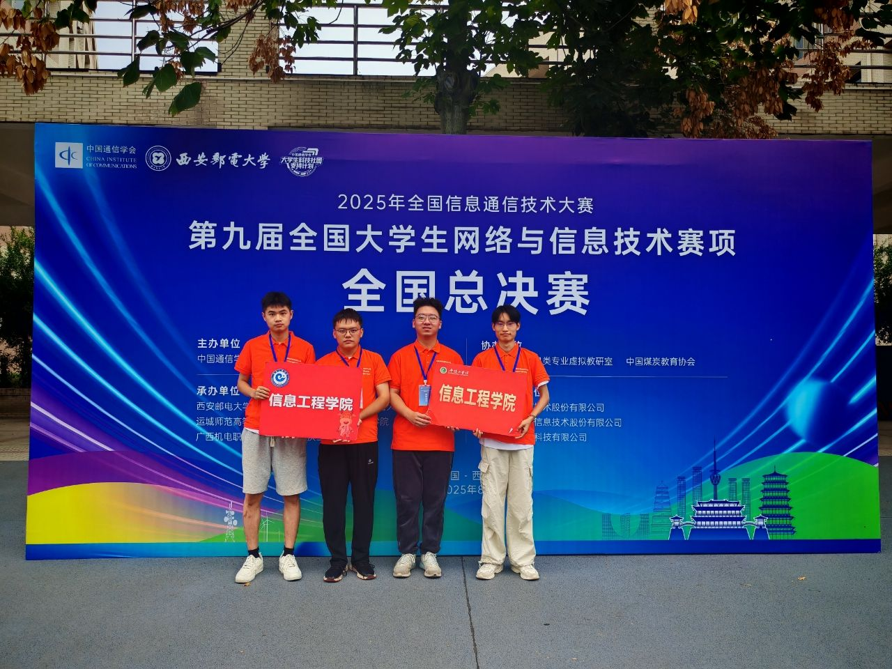 8月21日至23日,2025年全国信息通信技术大赛-第九届全国大学生网络与信息技术赛项全国总决赛在西安邮电大学顺利举行。本届大赛共吸引了来自西安交通大学、北京邮电大学等全国500多所高等院校的近万名学生参赛。经过初赛、分区赛、全国总决赛三个阶段的激烈角逐,威廉希尔官网威廉希尔官网学子任泽辉、朱道豫、魏杨和马拉加工程学院学子张智豪凭借扎实的专业功底和出色的实践能力脱颖而出,获得国赛二等奖1项,国赛三等奖3项。