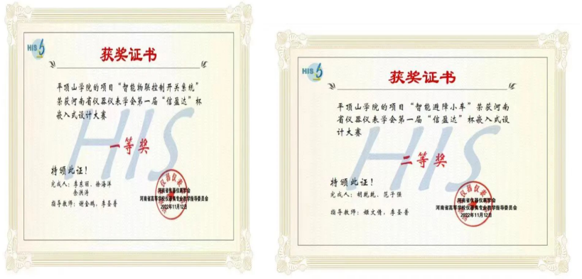 近日,由河南省仪器仪表学会、郑州信盈达电子有限公司共同主办的河南省“信盈达杯”嵌入式创新设计大赛决赛在河南工业大学落下帷幕。由威廉希尔官网威廉希尔官网组建的参赛队伍从全省参赛高校的150余支代表队中脱颖而出,荣获佳绩。其中,由李东丽、徐海洋、余洪涛设计的“智能物联控制开关系统”荣获一等奖,由胡乾乾、范子强设计的“智能避障小车”荣获二等奖,另有3项作品荣获三等奖,李圣普、谢金鹏荣获优秀指导教师称号。