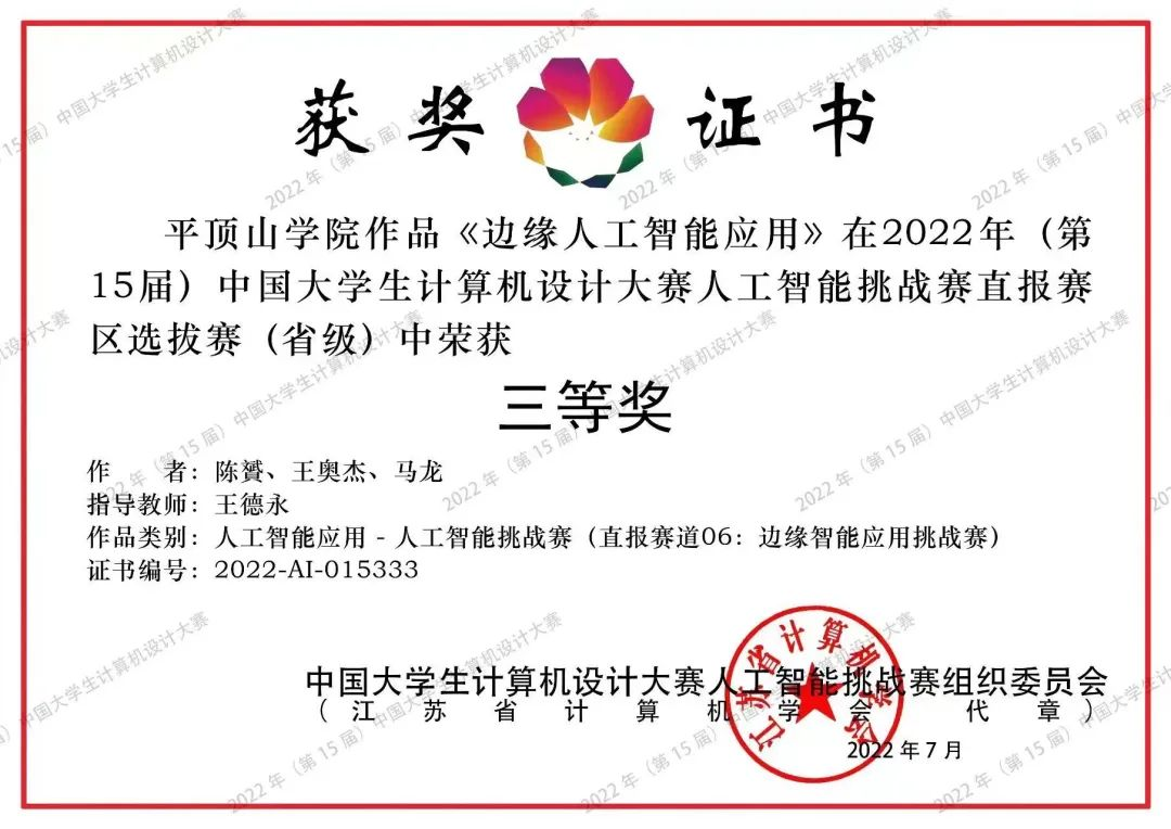 恭贺他们计算机设计大赛获得三等奖